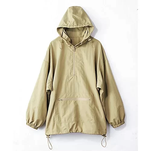 フロントジップと大きなポケットがアクセントのアノラックパーカーです。ゆったりしたサイズ感と、袖口にゴムを入れているためストレスフリーな着心地です。