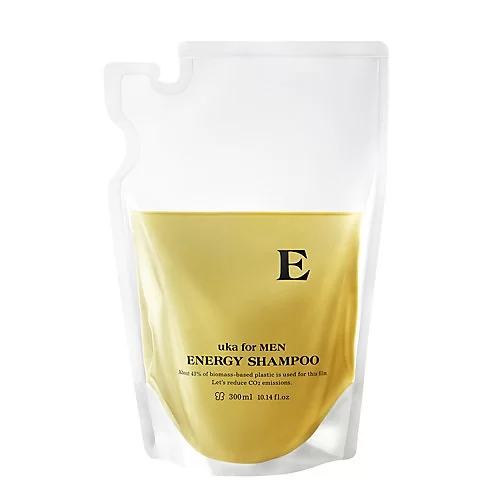 「uka for MEN SHAMPOO」シリーズの容器がバイオマスパッケージへリニューアル。ポンプ式で使いやすさにこだわったチャビーボトルと、持ち運びやお試しにおすすめのスキニーボトル、そしてリフィルの3種類。