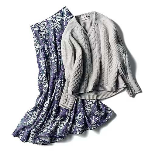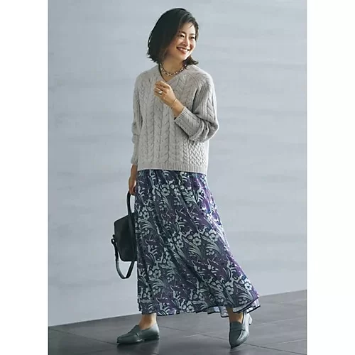 ケーブルニット & プリントスカート