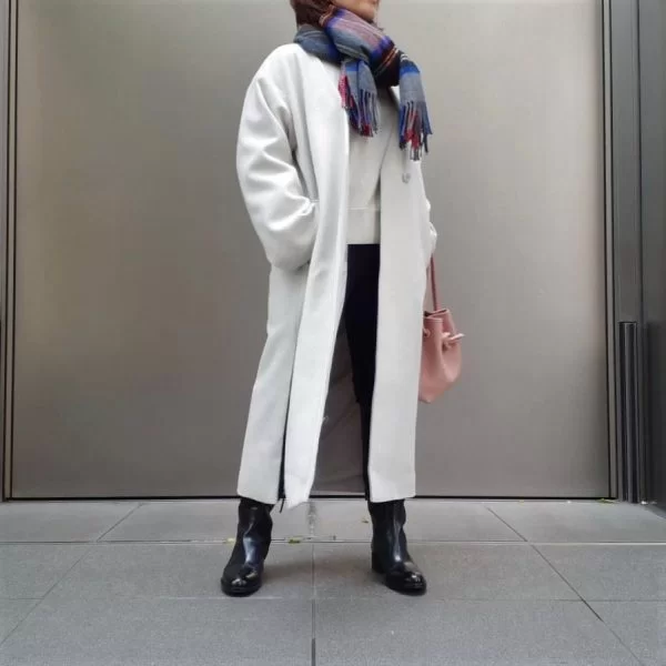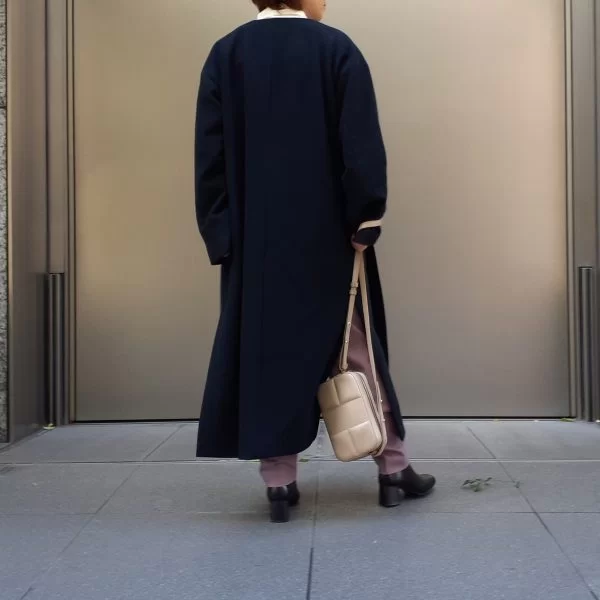 今シーズン注目のミディ丈コートは、パンツにもスカートにも合う丈バランスが絶妙。ベルトでウエストマークしても、着流してボックスシルエットにしてもサマになる。印象的な大きめ襟で小顔効果にも期待。