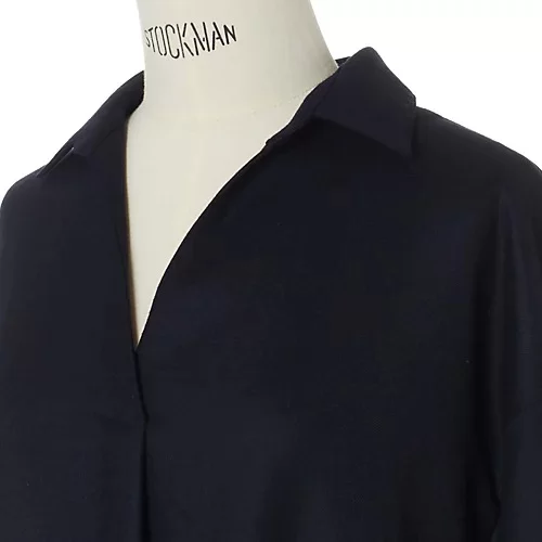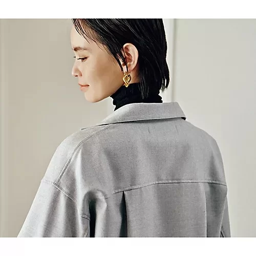 - インラインで人気のスキッパーブラウスを、LEEマルシェのためにワンピースにリデザイン。ウールを基調にした生地はほどよい厚みでハリとコシがあり、体の余計なシルエットを拾うことなくスーッと落ちるのが特長。鋭角にあいたネックラインには小顔効果、そして前後差をつけたラウンドヘムにはふくらはぎのカバーと足元の軽やか見えが期待できます。着丈は身長165cmで、後ろ部分がふくらはぎが隠れる長さ。サイドから見たときの斜めのラインもきれいです。優しげなライトグレーほか、引き締め効果大のネイビーも展開。ドロップショルダーとヨークの切り替えシームで、後ろ姿にメリハリを。肩まわりの可動も快適です。