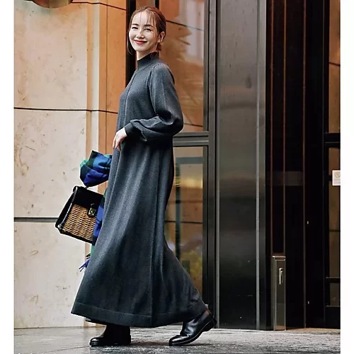 - さらりと着るだけで即着映えさせてくれるワンピースは、年末年始に大重宝するアイテム。落ち感のあるしなやかな素材感と、裾だけひらりと広がるシルエットのおかげで、着やせ効果も絶大です。肩のギャザーや、バルーン袖のたまり、前後のセンターの切り替えなど、今っぽいディテールがちりばめられた洗練デザイン。チャコールグレーのほかに定番のブラックも。背中の真ん中に入った切り替え線が、体をほっそり縦長に見せてくれます。アクセントとなる肩ギャザー入り。