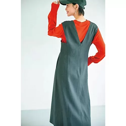 - フロントはすっきりシンプル、後ろ身頃の腰高位置とスカート部分に切り替え入り。「大人の体をきれいに見せつつ、汎用性も抜群!」と評判のワンピースを、より長いシーズン活用できる、適度な厚みのギザコットン生地で別注、さらにお求めやすいプライスで仕上げてもらいました。毛羽が少なく張りのある素材と背面の切り替えが、360度どこから見ても美しいAラインをキープします。