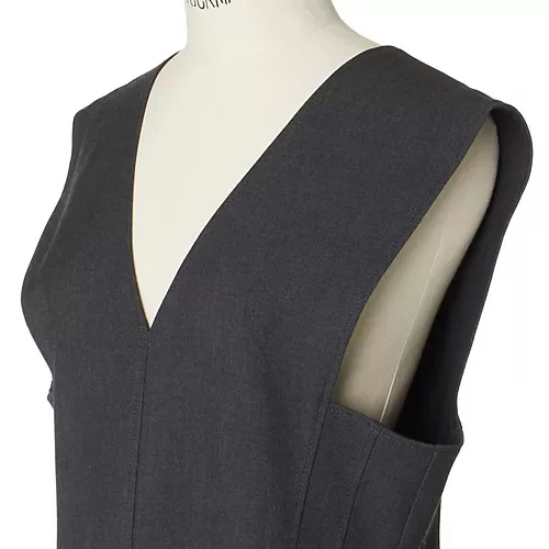 - ウエストからさりげなく広がるセミフレアシルエット。デザイン性がありながらも、ベーシックなクルーネックやタートルネック、ボウタイブラウスまでさまざまなインナーを受け止めます。両サイドには、ダーツと一体化したスリットポケットが。後ろにも深めのVカットを採用。鮮やかなインナーでコントラストを強めると鋭角がきわだち、バックスタイルがより印象的に。