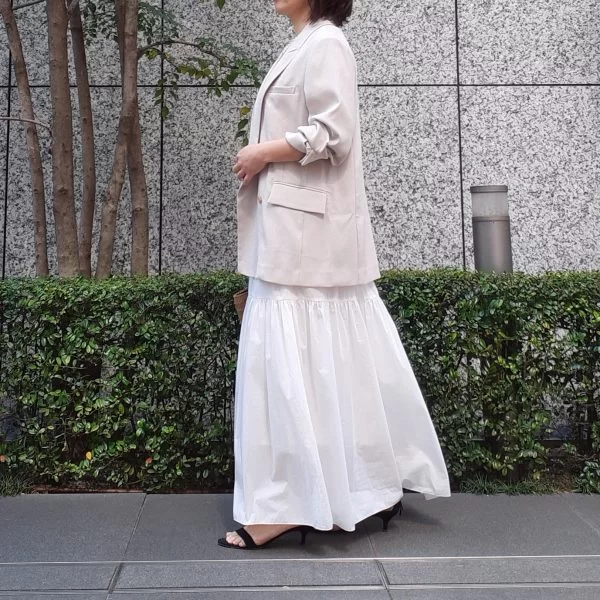 身長155㎝中肉&157㎝ぽっちゃり&164㎝やせ型のマリソルスタッフで着比べてみました♪「M7days」春夏素材こなれジャケット【40代ファッション】