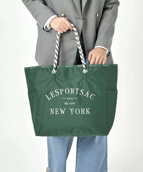 プレッピーな印象のグリーン(緑)に、ホワイト(白)のレスポートサックのブランドネームが映えるシンプルなデザイン。