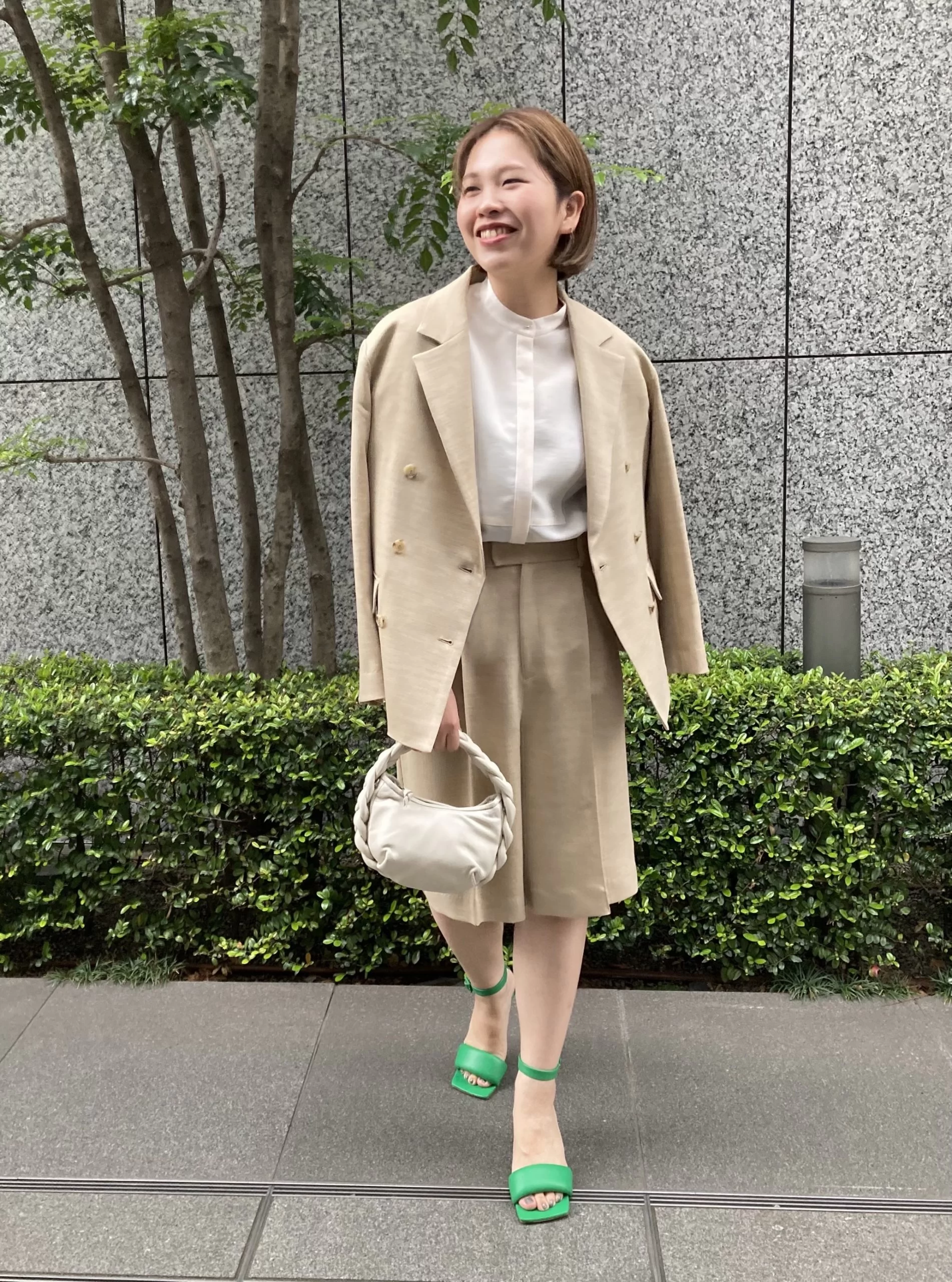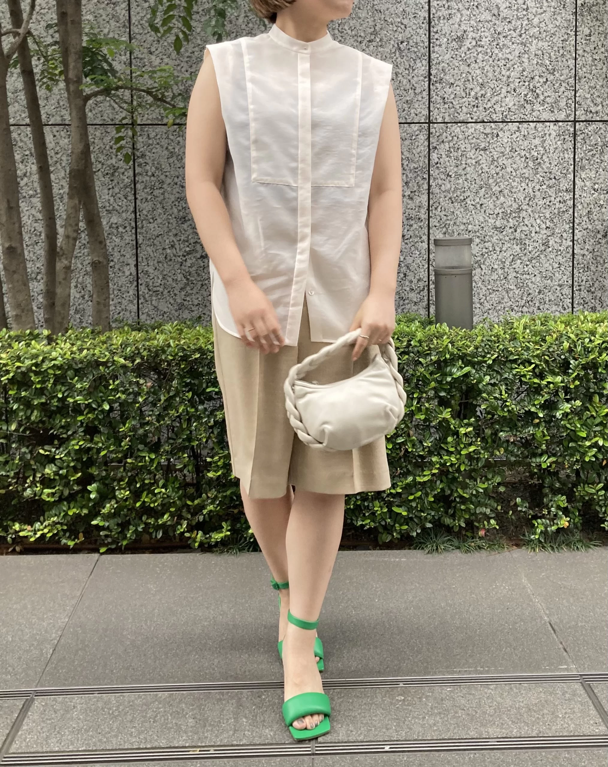 その他、ジャケット¥30,800/ハーフパンツ¥17,600(suade)/パッドサンダル¥35,200(PIPPICHIC)
