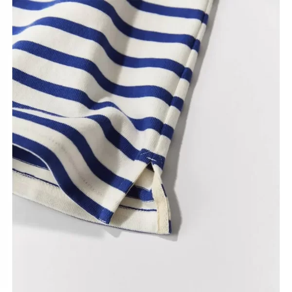 こだわりはなんといっても前後2WAY仕様。深めのスクエア浅めのスクエアになっているので、ボトム次第で変化させて着ていただけます。更に色展開もブルーボーダーとイエローボーダー。ありそうでなかった色展開も今年らしい1着になりました。