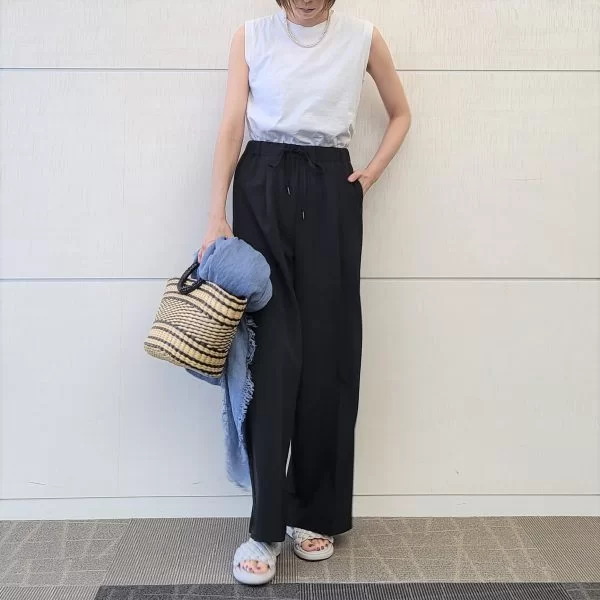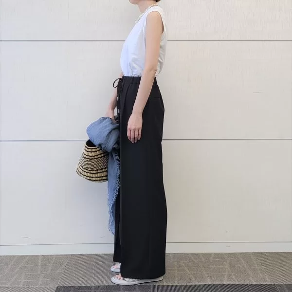 洗濯機で洗えてアイロンいらず!働く女性の味方「M7days/ドロストワイドパンツ」【40代ファッション】