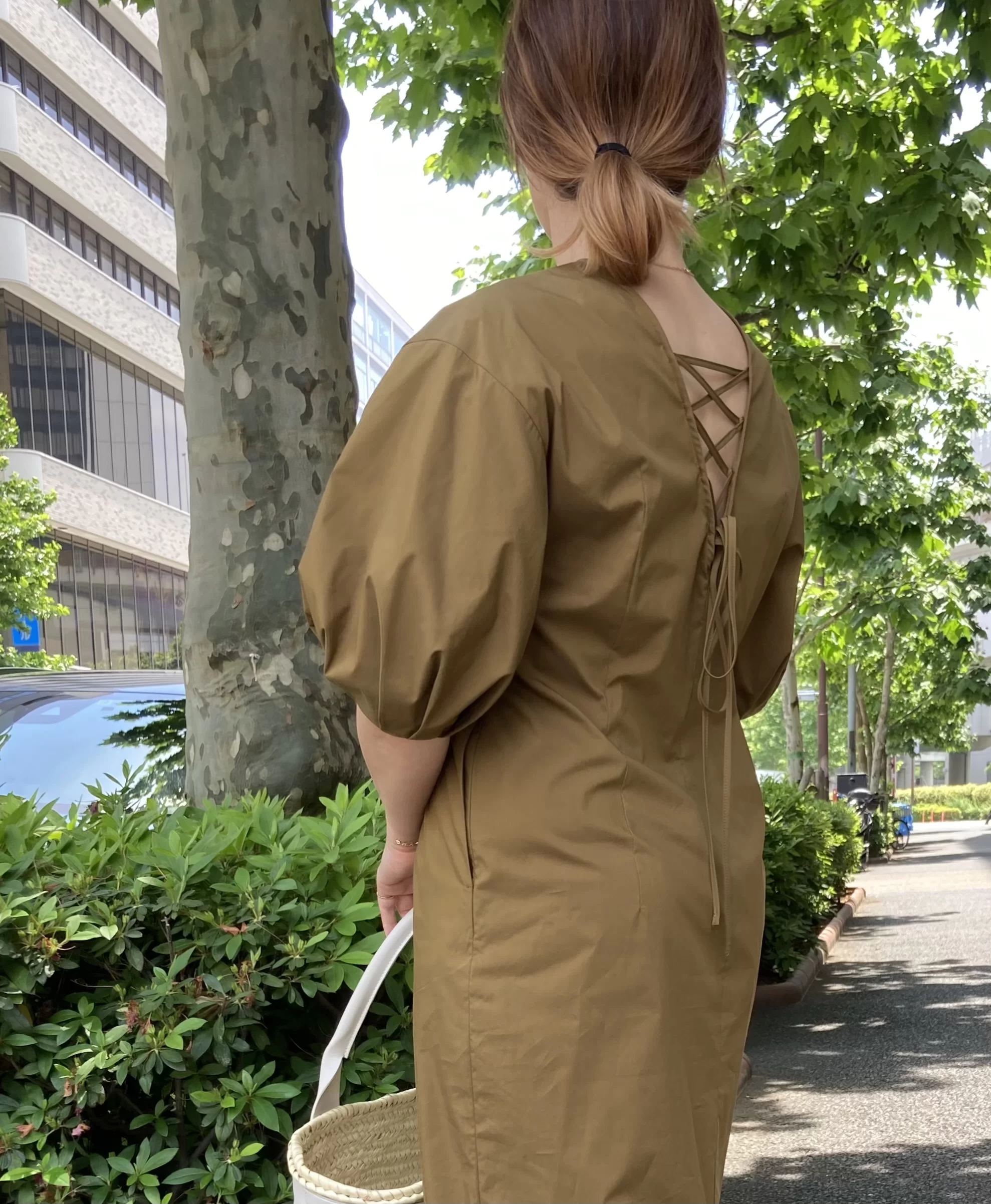 レースアップのバックシャンデザイン