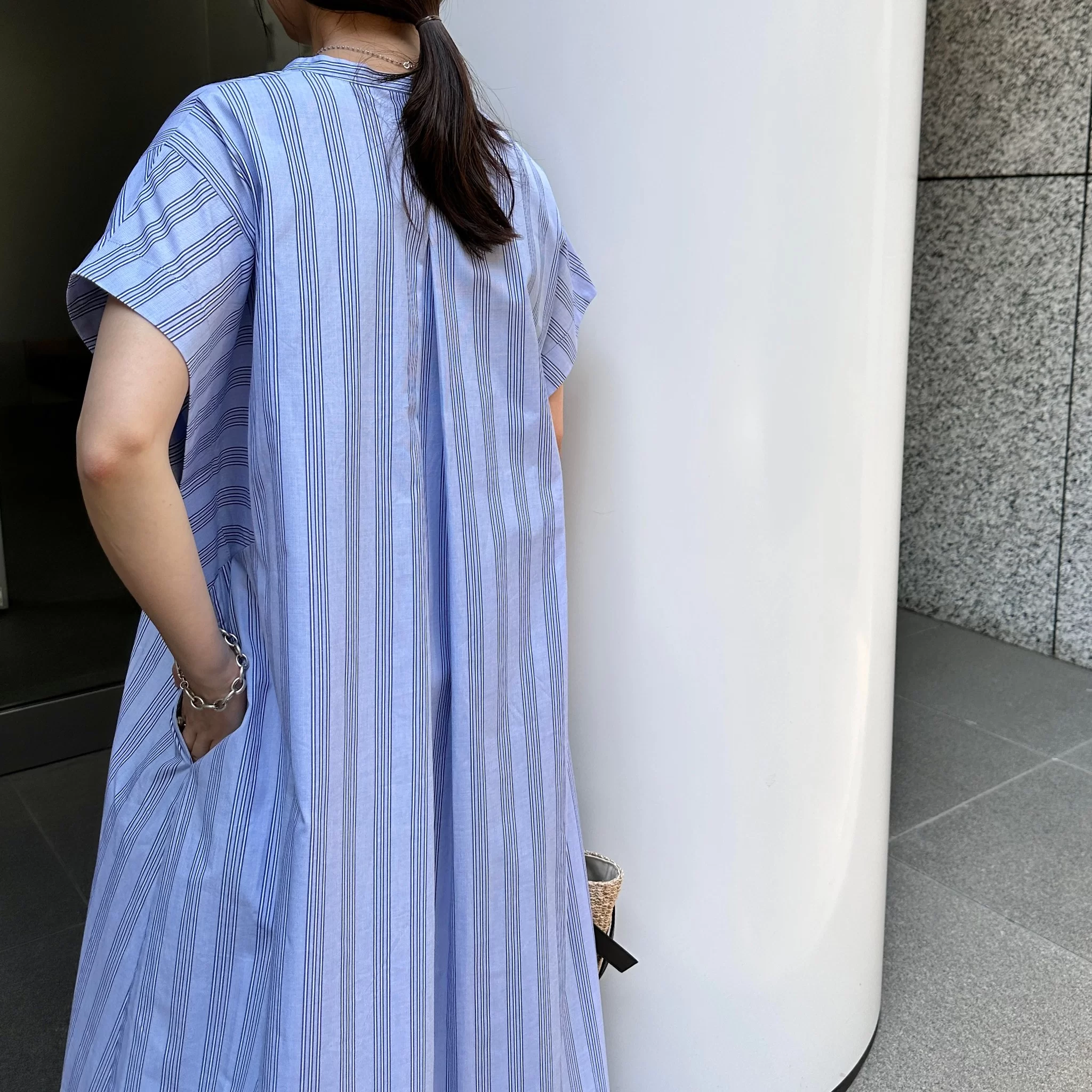 ストライプ柄が夏にぴったりの涼やかなスキッパーワンピース