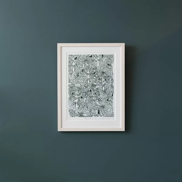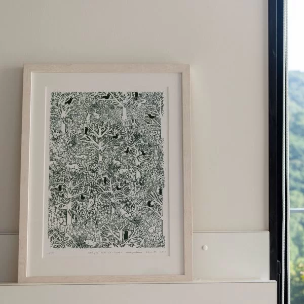 - 【KLIPPAN × minä perhonen】10周年 記念 A3アートポスター『rabbits play, birds rest, -forest- 』フレーム付