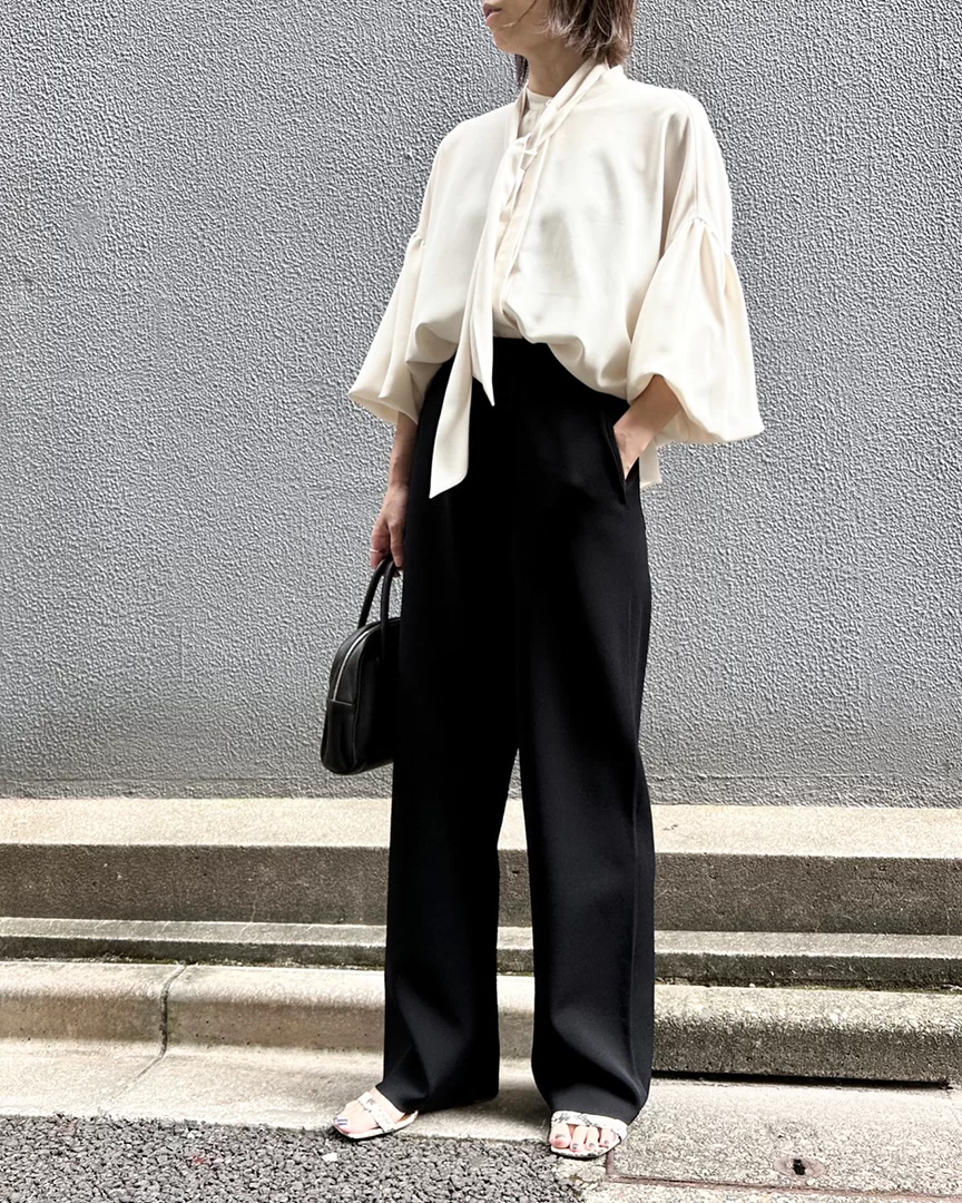 一枚で決まり、シーンレスで使えるボウタイブラウス