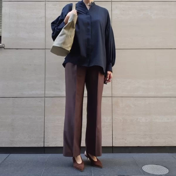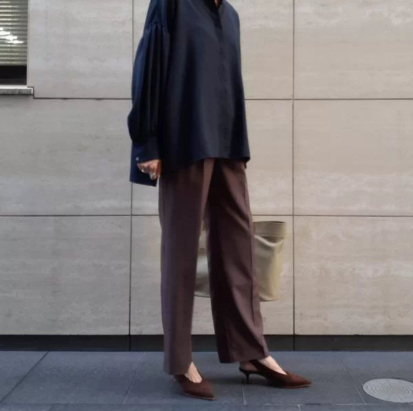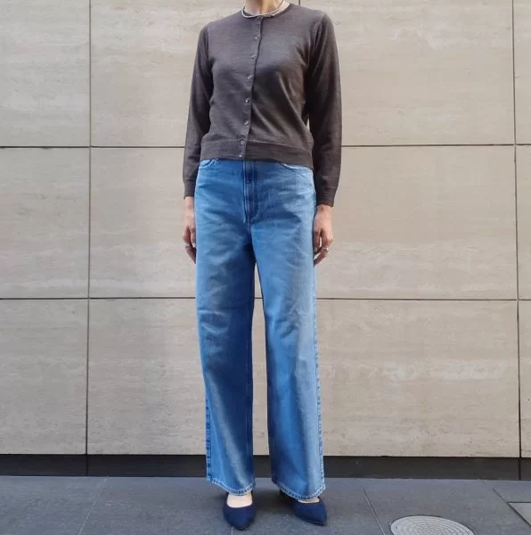 「丈が短めなので脚を長く見せてくれます。カジュアルなデニムでも大人ブラウンでまとめると、きれいめな印象に。」