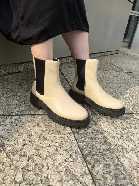 すでにブラックのサイドゴアブーツを持っている方は、こちらがおすすめです!優しいクリーム色が大人カジュアルにもきれいめコーデにも合わせやすく、履くだけおしゃれを一段、引き上げてくれます!