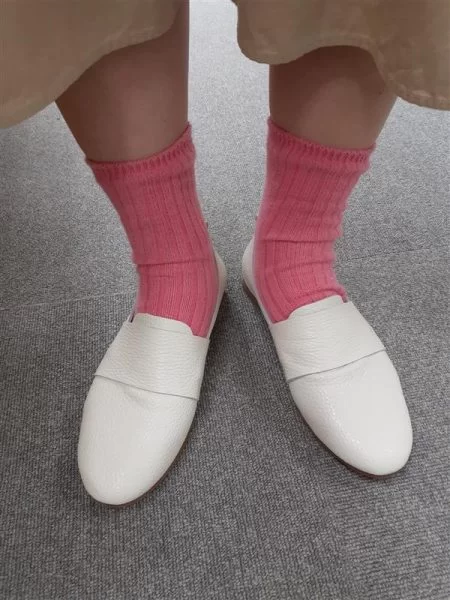 靴下合わせはもちろん、素足で履いても足当たりが柔らかくて大満足!通常は23cmを履いている私が、各サイズを履いてみました。