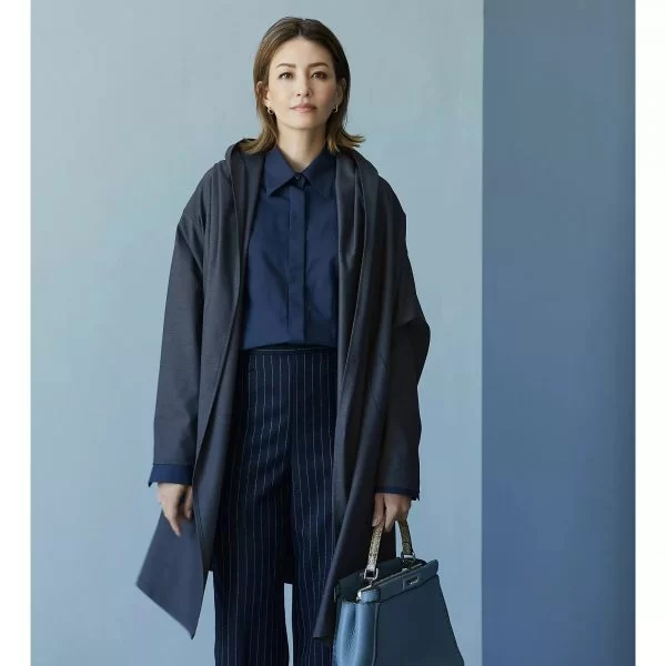 コートインにもなるシャツ地のドレープカーディガン。冬はコートのインに着たり、春先は軽羽織としても使えて便利!