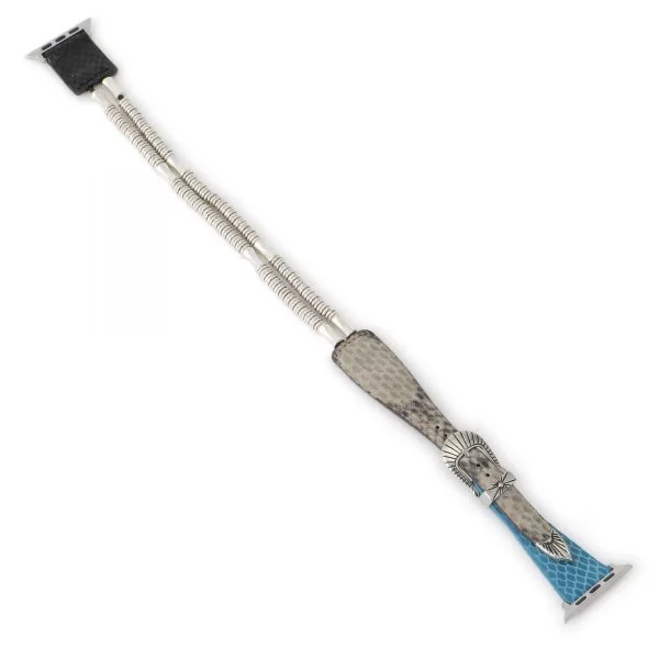 複数のマテリアルを採用し、クールな表情を晒すウォッチベルトです。落ち着いたライトグレーのスネーク柄に、同ブランドのモチーフであるメタルディテールが配され、まるでシルバーブレスレットを身に着けている感覚で使用できるのが魅力。また、サイズ調節可能なので、パートナーとペアで揃えるのもおすすめです。