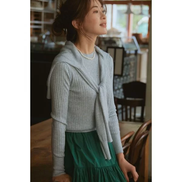 M7daysで人気のリブニットが新色で登場。つかず離れずのフィット感で、体のラインを拾いすぎないよう計算されたワイドリブのプルオーバーと同素材のカーディガンのコンビ。どちらも着丈をやや短めにデザインしているので、一枚で着るだけで今っぽいバランスに仕上がる。さりげないラメはホリデーシーズンのお出かけシーンにも便利。