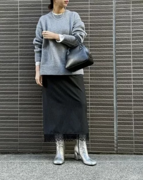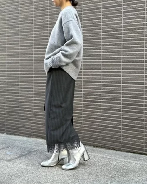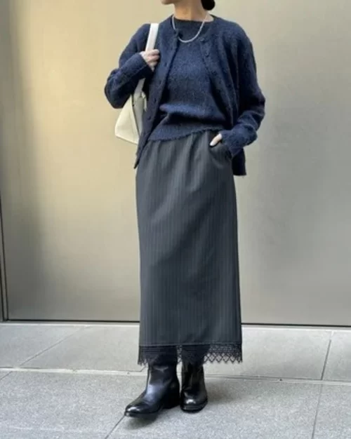 マンネリ化しているニットコーデに何か新しさが欲しいなと思っているときに、M7days裾レースIラインスカートが目に止まりました!
