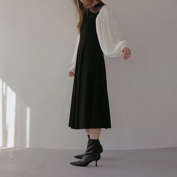 カットソーと布帛素材をドッキングさせた異素材ドレス
