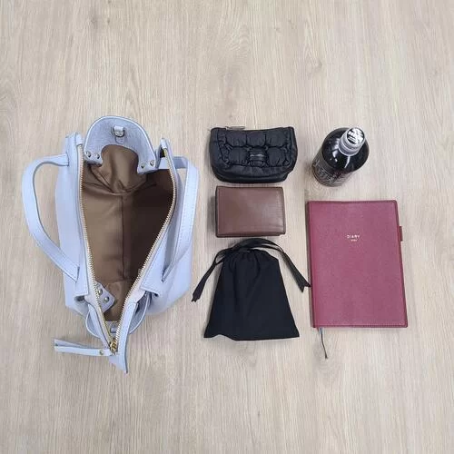 膝上に収まるミニバッグは