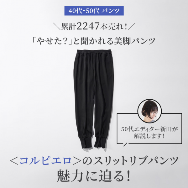 定番とろみ素材の万能パンツが復刻。ウエストから太ももにかけて深めのタックが入ったテーパードシルエットで、はき心地も抜群。薄すぎず厚すぎない生地はオールシーズン着られ、明るい色でも透けないのもポイント。さまざまなシーンで活躍する一本。