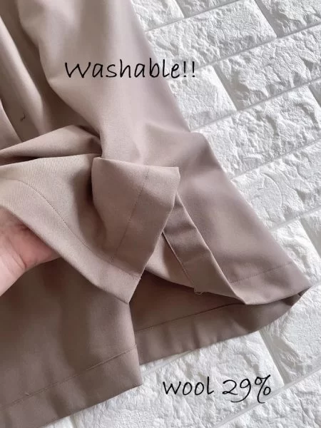 わたしが驚いたのは、この商品が「洗える」こと! ほどよい厚みがある生地は、ウールが「29%」も入った高級感のある見た目。それゆえ自宅洗濯はNGだと思っていましたが、ウォッシャブルにするために「ポリエステル」を加え「手洗いOK」にしたとのこと!2wayで着回せるだけに、洗えるのはかなりうれしいです★