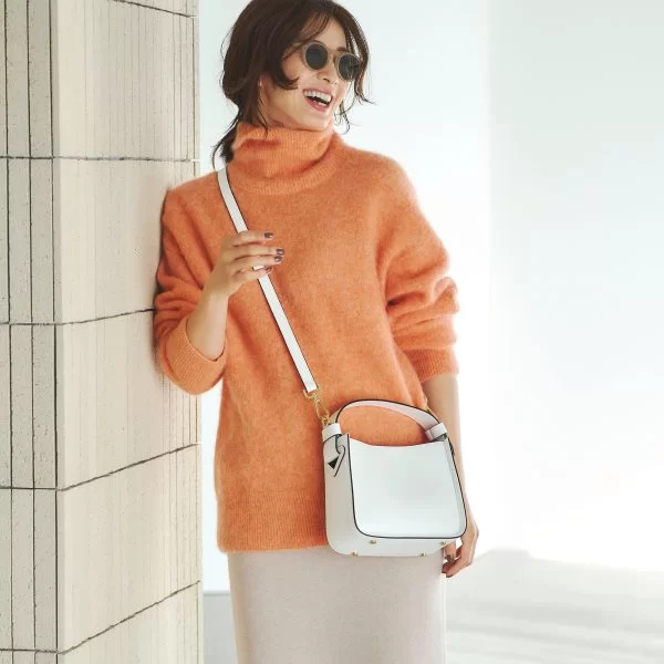高級感のあるレザーが、大人のコーディネートにふさわしいアイテム。ストラップつきで斜めがけできるのもポイント。春コーデにもぴったりなクリーンなホワイトはMarisol別注カラー。