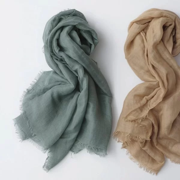 3シーズン活躍するシルクリネンのストール。大判サイズなので、室内の冷房対策から夏の日よけアイテムとしても大活躍します。