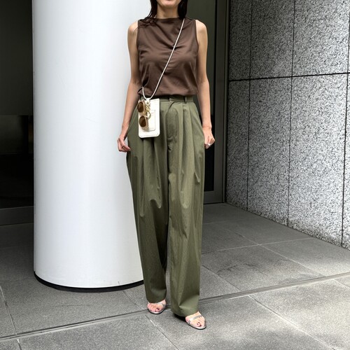 ファッションディレクター高園あずささんとM7daysのコラボアイテム。リラクシーでありながらきれいめな着こなしがかなう、肌ざわりのいいとろみ素材。裏地なしで暑い夏もさらっと着られる。ウエストは内側のゴムでサイズ調整できる仕様で、リラクシーに着たりジャストウエストできちんと着こなしたりとアレンジ自在。