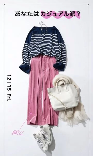 ピンクのパンツをはくだけで、なんてことないボーダートップスとのワンツーコーデもサマになる!華やかなピンクパンツは、はくだけで気分もアガるアイテム。オーガニックコットン製のパンツではき心地も抜群!