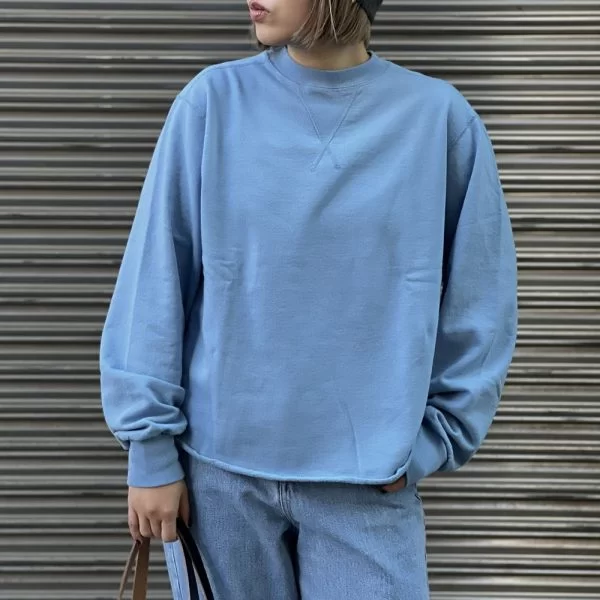 インすることを前提に作っているので、裾にはリブをつけず、ボトムの中で生地がゴロつくのを軽減しています。大きめのガゼットを前後に付けて、後ろ姿も可愛く仕上がっております!カラーはブルー・イエロー・グリーン・グレーの4色展開。テンションの上がるカラーをチョイスして♥