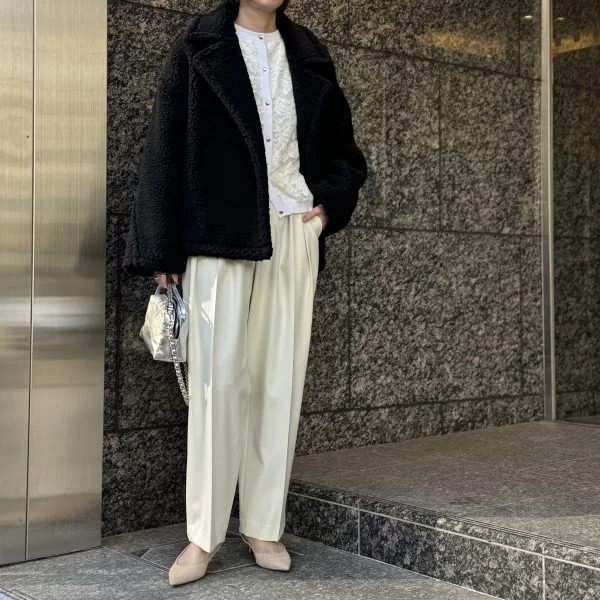 そして、見た目が華やかさはもちろんですが、形は正統派なクルーネックカーディガンというのがまた嬉しいポイントです。