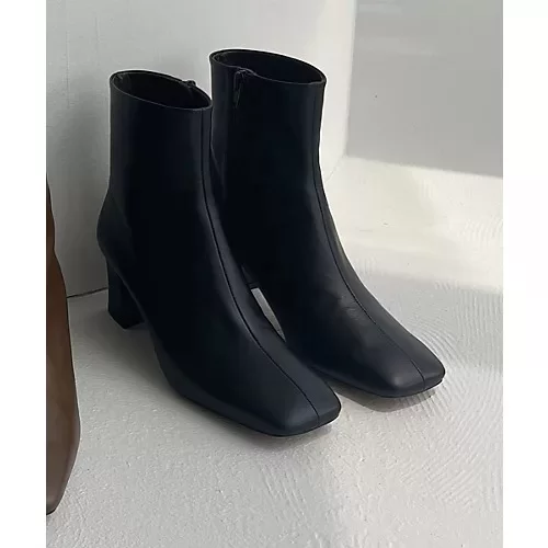 柔らかくてしっとり馴染むカウレザーを使用したブーツ。スクエアトゥで足当たりも優しく痛くなりにくいのもポイント。ヒールは6.5㎝と高めですが、安定感があって歩きやすいのにスタイルアップも後押し!