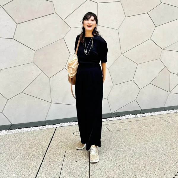 華やかなシーンでひと際存在感を放つ「L’UNE×eclat ・【別注】ベルトつきプリーツドレス」【50代ファッション】