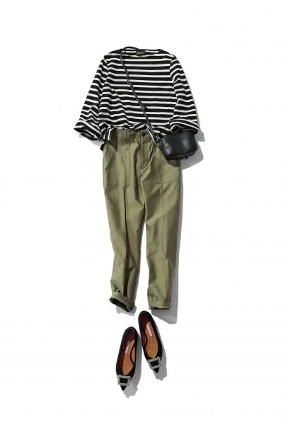 Coordinate5技ありのボーダーTとフラット靴でおしゃれ上級者のワンツーコーデ