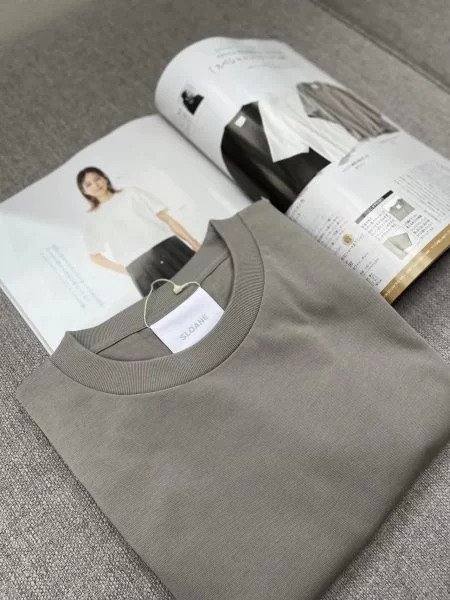 程よいネックライン、リブが太すぎないので首周りを綺麗に見せてくれます。
