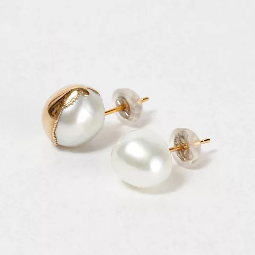 自然のままに生み出された、歪んだかたちの淡水バロックパールを使用したクラシカルなピアス