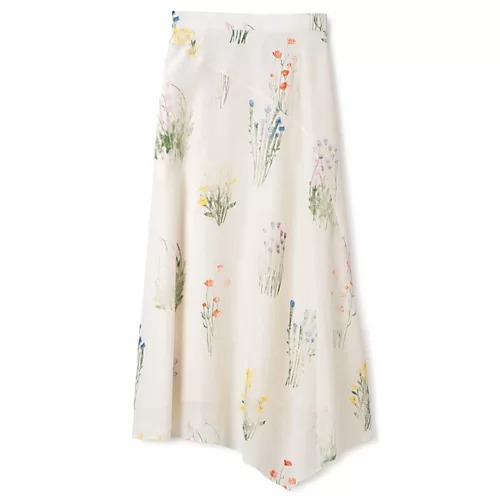 年に一度のバレンタイン。せっかくなら気分の上がる装いで過ごしたいもの。淡い花柄がロマンティックなスカートに淡色ニットを合わせたフェミニンな装いで。足元はエッジ―な金具がモードなローファーで引き締めて。
