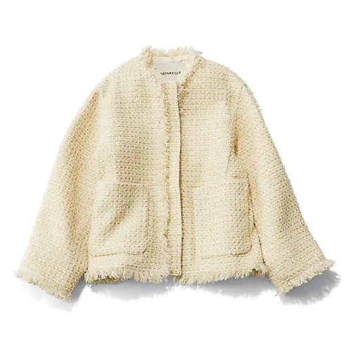 デパリエのアイコンアイテムであるツイードジャケットは、感度の高い女性たちに圧倒的に支持されている名品。ほかではなかなか見られない繊細な糸のミックスが華やかで、フリンジがほどよくラグジュアリーなムードを演出。ボクシーなシルエットでシーンや体型を選ばず、長く愛せる一着