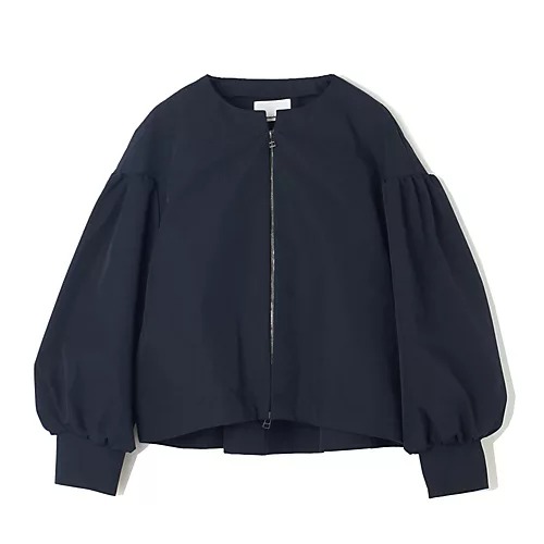 さらりとした肌ざわりと適度なストレッチ性が持ち味のポリエステル素材で、撥はっ水すい性もあるので重宝。たっぷりとした立体的なギャザー袖がポイントになり、上品な光沢感があるのできれいめなスタイリングにもなじむ。横から見てもふんわりとしたかわいいフォルム。コンパクトな丈感で好バランス。