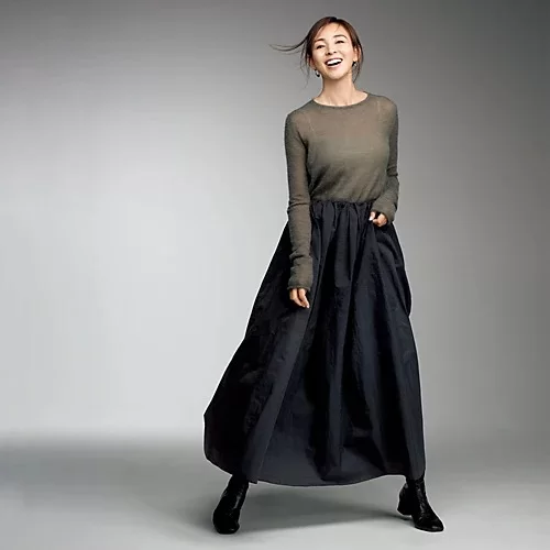クラッシュタフタをたっぷり使用したマキシ丈スカート