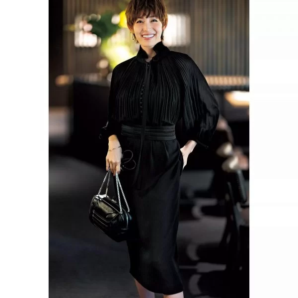 繊細なシフォンプリーツがブラックドレスを華やかに演出