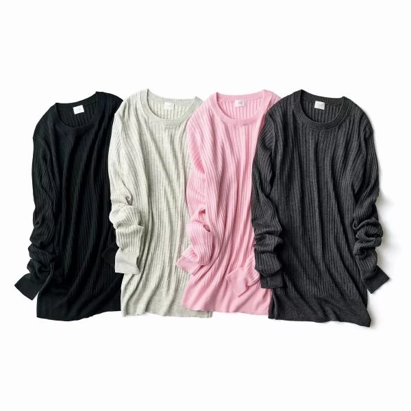 体のラインを拾いにくい絶妙なリブのピッチで、すっきり見えをサポート。