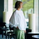 ロンTって、実は一枚あるととても便利なアイテム。素材にニュアンスがあって、裾をアウトしてもインしても決まるタイプが、エクラ世代にはおすすめです。カットソーブランドならではの高品質と着心地のよさはさすが。ぜひ、実感してみてください(村山さん)。