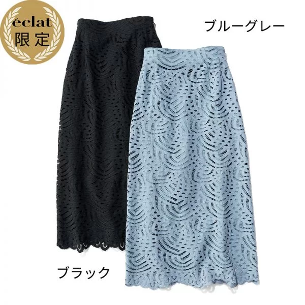 グラフィカルなカットワークレースだから、レース特有の華やかさはありつつカジュアルにも着られるのが魅力。計算された台形シルエットでほっそり見える。