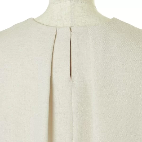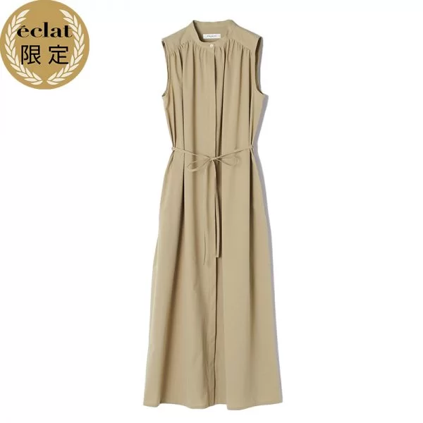 リネンの風合いに近づけたポリエステル素材で適度な張りがあり、流れるような落ち感が美しいシルエットを実現。アシメトリーなタックがモダンなアクセントに。