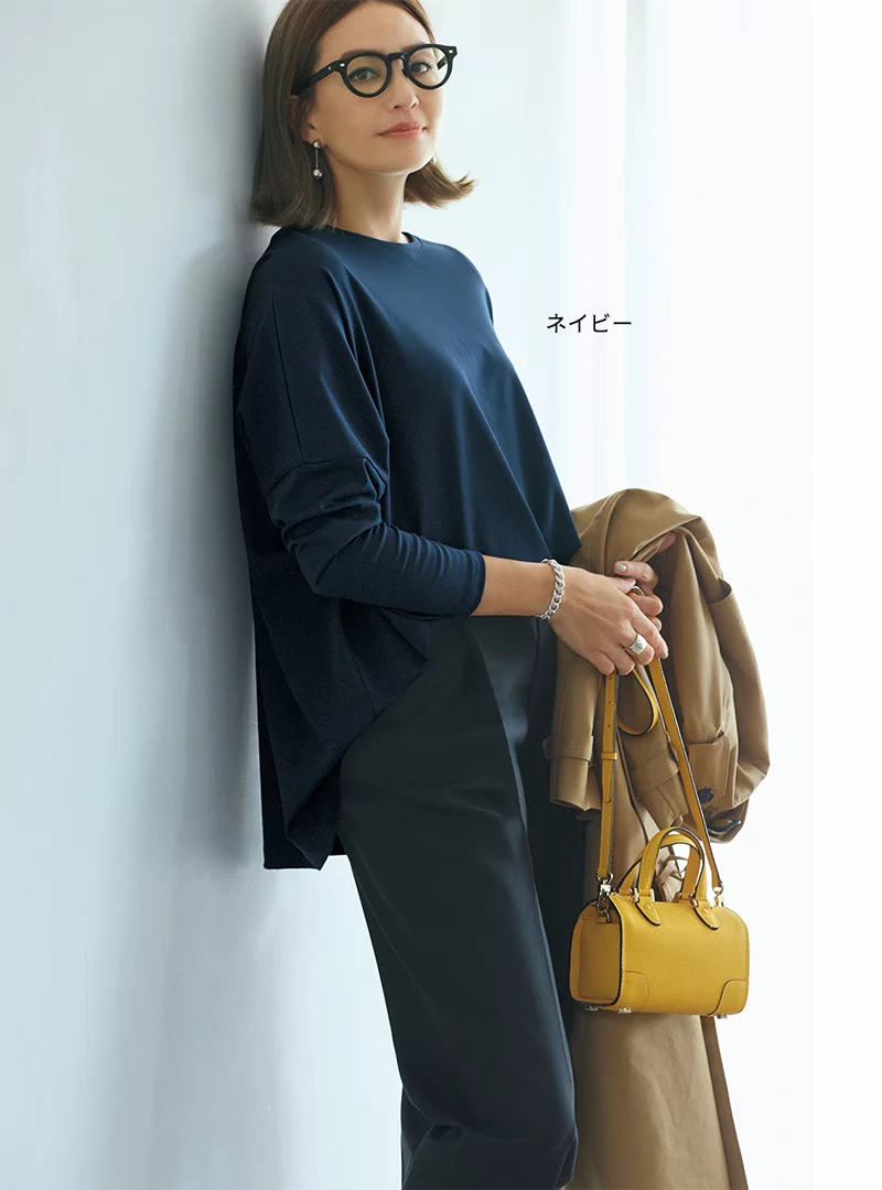 体が泳ぐゆったりとしたシルエットと、たくし上げても様になるジャストフィットな袖のメリハリバランスで、さらりと着るだけで様になる。最高峰のスビンコットンの上品なツヤ感が、カジュアルスタイルを格上げして。