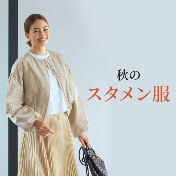 明度の高いベージュとアイボリーは、装いが沈みがちな季節のさし色にも◎
